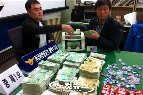 경찰 관계자는 "도박참가자들이 낸 진정서에 따르면, 돈을 빌려준 '꽁지'들이 조폭을 대동해 집까지 찾아와 협박했지만 도박을 했다는 사실 때문에 신고도 못하고 괴로워했다는 진술이 담겨 있었다"고 밝혔다.