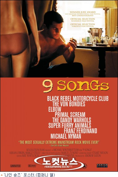 {IMG:2}'포르노 논란'을 일으켰던 영국 출신의 거장 마이클 윈터바텀 감독의 2004년 작 '나인 송즈'가 27일 뒤늦게 국내 개봉을 확정했다.