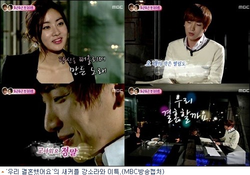 그룹 슈퍼주니어의 멤버 이특이 가상결혼을 펼치게 된 배우 강소라에게 자작곡으로 수줍은 프로포즈를 했다.