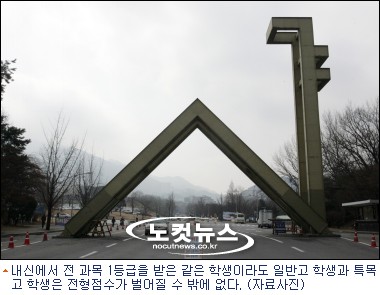 내신에서 전 과목 1등급을 받은 같은 학생이라도 일반고 학생과 특목고 학생은 전형점수가 벌어질 수 밖에 없다.