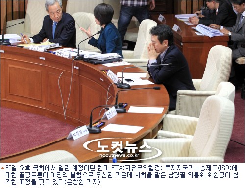 한미자유무역협정(FTA) 비준안 처리와 관련해 여야가 가장 크게 대립하고 있는 '투자자-국가소송제도(ISD)를 놓고 30일 예정된 여야정 끝장토론회가 끝내 무산됐다.