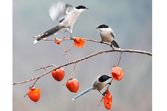감이 익는 계절이 왔다. 1일 완주 소양면 감나무에 누군가 남겨놓은 '까치밥'에 물까치들이 반가운 듯 달려 들었다. 이 계절, 각자가 누군가에게 '까치밥'을 남기며 살고 있는 지 되물을 일이다.
