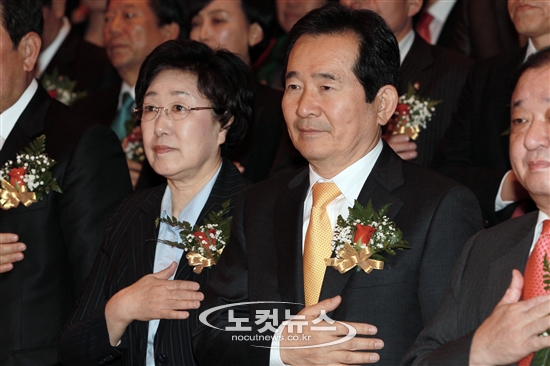 국민의례하는 한명숙-정세균