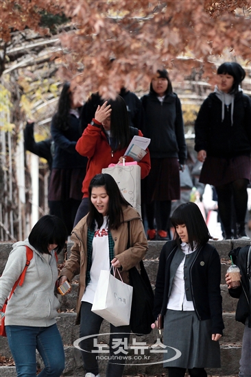 2012학년도 대학수학능력시험이 치러진 10일 오후 서울 종로구 이화여자외국어고등학교에서 시험을 마친 나온 수험생들이 홀가분한 표정으로 교정을 나서고 있다.