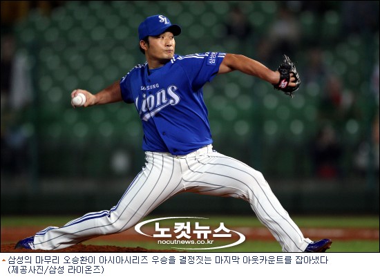 오승환은 삼성의 2011시즌을 화려하게 마무리했다. 29일 대만 타이중 인터콘티넨탈 야구장에서 벌어진 2011 아시아시리즈 한국 챔피언 삼성과 일본프로야구 우승팀 소프트뱅크와의 최종 결승전. 한달 전 한국시리즈 우승 때와 마찬가지로 마운드 위에서 포효하는 투수는 오승환이었다.