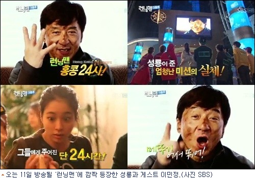 오는 11일 방송될 SBS ‘일요일이 좋다-런닝맨’ 홍콩편에서는 성룡이 출연해 직접 런닝맨들에게 미션을 전달했다. 이날 ‘런닝맨’ 멤버들은 눈앞의 성룡을 보고도 믿지 못하고 놀라는 모습을 보이기도 했다.