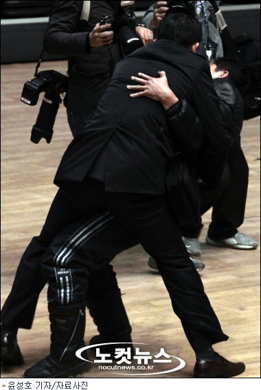이날 전대에서는 처음부터 끝까지 통합파와 반대파 대의원 사이에 크고 작은 몸싸움이 계속됐다.