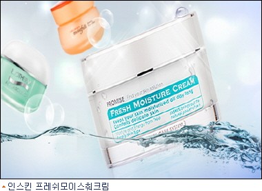 지성피부를 위한 수분크림인 인스킨 프레쉬모이스춰크림은 유분감과 끈적임이 없어 사용 후 유분이 모공을 막지 않으면서 피부에 겉돌지 않고 산뜻하게 마무리된다.