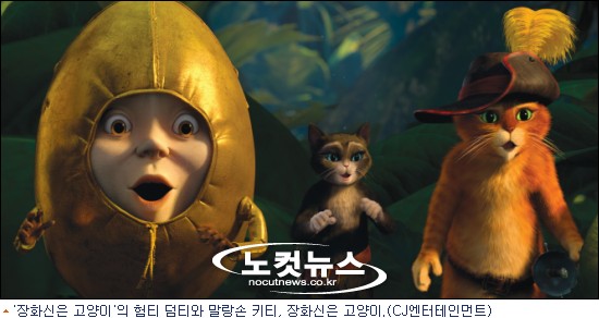 화려한 칼솜씨를 지녔지만 위기 상황이 되면 큰 눈망울로 상대를 애절하게 쳐다보는 '필살 애교'로 관객을 사로 잡은 '슈렉' 시리즈의 매력 캐릭터 장화신은 고양이. 그를 주인공으로 내세운 애니메이션 '장화신은 고양이'에는 장화신은 고양이를 능가하는 매력을 지닌 험티 덤티와 말랑손 키티 등이 등장해 관심을 모으고 있다.