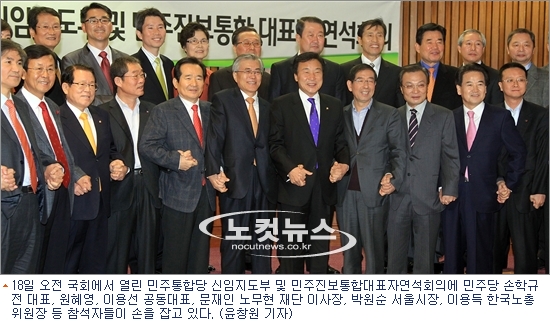 이날 오전 국회에서 열린 연석회의에서는 대표자급 인사들이 민주통합당의 출범을 축하하고, 내년 총선과 대선 승리를 기원했다.