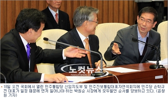 새 지도부 선출 이전까지 당을 이끌어갈 원혜영, 이용선 공동대표를 비롯해 손학규 전 민주당 대표, 문재인 노무현재단 이사장, 박원순 서울시장, 이용득 한국노총 위원장, 이해찬 전 총리, 정동영 정세균 이인영 박주선 민주당 최고위원, 문성근 국민의명령 대표 등 다수의 인사들이 참석했다.