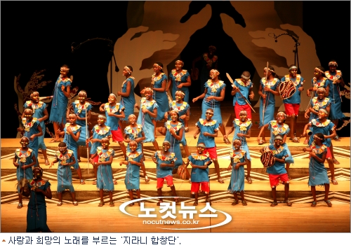 힘겨운 환경에서 살던 아이들이라고는 믿기지 않을만큼 천진난만한 얼굴로 노래하는 27명의 지라니 합창단.