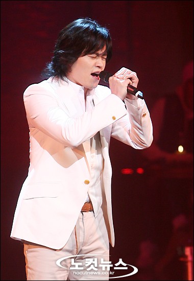 [BestNocut_R]음악 토크쇼 ''초콜릿'' MC를 맡은 탤런트 김정은이 8일 오후 서울 등촌동 SBS 공개홀에서 가진 첫 공개녹화를 진행한 가운데 ''연인'' 이서진이 깜짝 게스트로 등장해 가수 임재범의 ''고해''를 열창하고 있다.