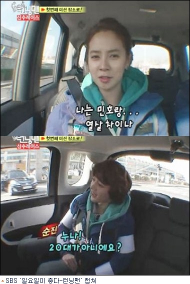 잘생긴 아이돌과 구성된 팀 덕에 송지효는 기뻐했다. 하지만 기쁨도 잠시 미션 장소로 이동하는 도중 민호는 송지효에게 나이를 물었다.