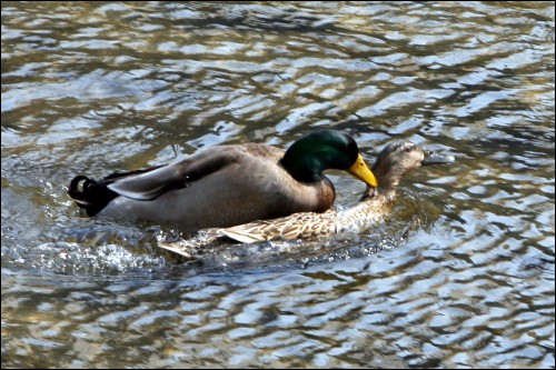 완연한 봄날씨를 보인 9일 오후 서울 청계천을 찾은 청둥오리가 짝짓기를 하고 있다.