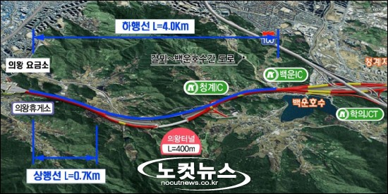도 건설본부는 미개통 잔여구간 9.07㎞을 포함, 수원시 금곡동에서 의왕시 청계동 구간 13.07㎞를 올해 12월말까지 완전 개통할 계획이다.