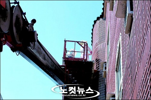 앞서 두달 전쯤 스카이차에 올라 외벽 보양작업을 하던 중 6미터 아래로 추락을 하는 사고를 당한 것이다.