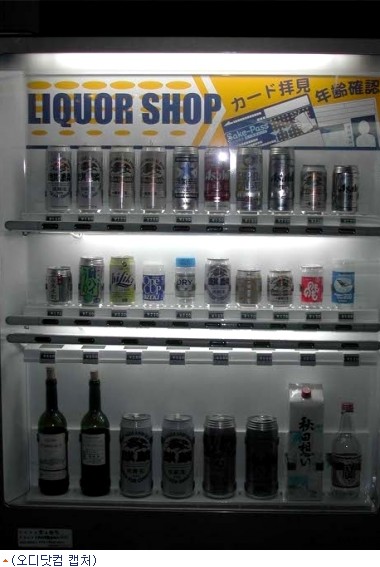 유흥에 빠질 수 없는 술을 파는 자판기도 있다. 일본 도쿄 지역 '리커샵'이라 적힌 자판기 안에는 맥주부터 사케, 와인까지 다양한 술들이 진열돼 있다.