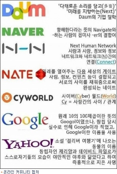 우리에게 익숙한 포털사이트 이름의 유래가 눈길을 끌고 있다. 무심코 지나쳤던 포털사이트 이름이 어떤 뜻이고 어떻게 지어졌는지에 대해 새삼 흥미를 갖게 된 것.