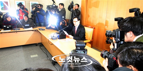 조중연 대한축구협회 회장이 축구협회 비리 공개 후 처음으로 말문을 열었다. 3일 오후 종로구 축구회관에서 가진 '퇴사한 전 회계 담당직원 횡령 관련 긴급 기자회견'에서 조 회장이 입장을 밝히고 있다 .