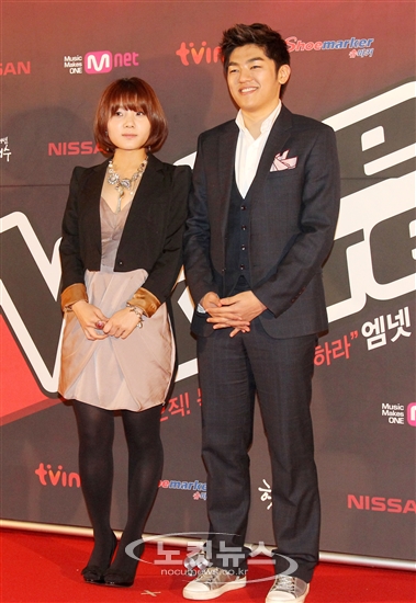 7일 오전 서울 상암동 상암CGV에서 열린 Mnet 보이스코리아 하이라이트 시사회에 참석한 가수 이정아와 이건율이 포토타임을 갖고 있다.