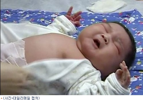 데일리메일은 지난 2008년-2010년 사이 중국에서 7kg이 넘는 아기는 3번 태어났으며, 기네스 기록에 따르면 세계 최고 우량아는 미국 오하이오주에서 태어났다가 곧 세상을 떠난 10.8kg 아기였다고 전했다.[BestNocut_R]