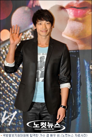 국방홍보원은 24일 공식 홈페이지를 통해 비(본명 정지훈)가 국방홍보지원대원에 최종 합격했다고 발표했다. 비외에도 배우 임주환과 김재욱, 가수 김성원 등이 선발됐다.