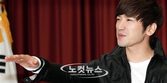 약2년간의 공익근무를 마치고 소집해제 된 가수 이민우가 2일 오전 서울 용산 한국철도공사 서울본사에서 팬들에게 인사하고 있다.