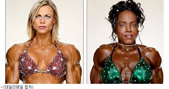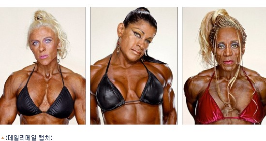 우람한 여성 보디빌더들의 얼굴을 담은 사진 작품들이 눈길을 끌고 있다고 지난 5일 영국 매체 데일리메일이 전했다.