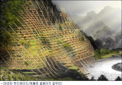 마운틴 밴드에이드(The mountain band-aid)라고 이름 붙여진 작품은 산기숡 안에 지어진 마천루다. 이는 거주지에서 쫓겨난 중국 몽족의 재정착을 돕고 광산 채굴로 황폐화된 윈난산맥의 복원을 위해서 디자인됐다.[BestNocut_R]