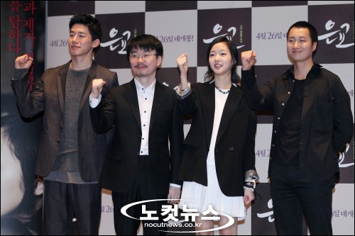 영화 '은교' 제작보고회가 27일 오전 서울 자양동 롯데시네마 건대점에서 열린 가운데 감독과 배우들이 포토타임을 갖고 있다.