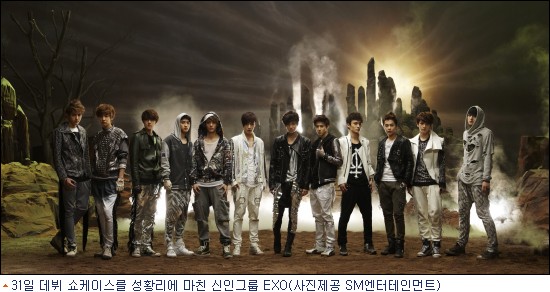 EXO는 한 마디로 동방신기, 슈퍼주니어, 소녀시대, 샤이니 등 최고의 한류 아이돌을 키워낸 SM의 야심작다웠다. 태양계 외행성에서 소년들이 도착하는 영상으로 시작된 이날 쇼케이스에서 EXO 멤버들은 강렬한 랩, 화려한 댄스, 뛰어난 가창력을 선보이며 2012 초대형 신인의 탄생을 알렸다.