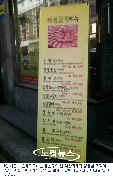 한편 서울시 홈페이지에 기제된 음식점 가격표와 실제 판매되고 있는 가격표를 비교해 사진으로 첨부하려고 했으나 서울시에서 문제가 있는 음식점을 삭제했다.