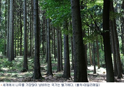 이 신문에 따르면 종이사용 최악의 나라는 벨기에다. 벨기에가 없애고 있는 나무들로 모든 인구가 1년간 사용할 종이를 만들어 낼 수 있다.