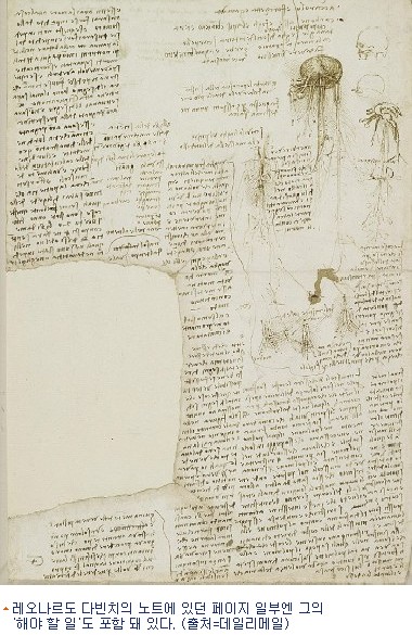 영국 데일리 메일은 6일 (현지시간) 레오나르도 다빈치의 ‘해야 할 일’이 적혀있던 노트를 공개했다.