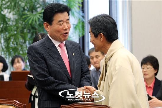 면도한 강기갑 의원, 김진표 "너무 젊어 지셨어~"