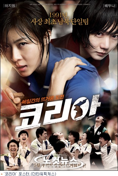 영화 '코리아'는 그날의 기억과 감동을 스크린에 재현한다. 중국의 높은 벽에 번번히 고개를 떨궜던 남북한이 단일팀을 급조해 1991년 지바 세계 탁구 선수권 대회를 치르기까지 영화보다 더 영화같은 46일 간의 과정을 순차적으로 나열했다. 당시 실제 선수였던 현정화 한국마사회 탁구단 감독의 생생한 증언과 영화적 상상력을 가미해 우리가 알지 못했던 그날의 뒷이야기도 살려냈다.