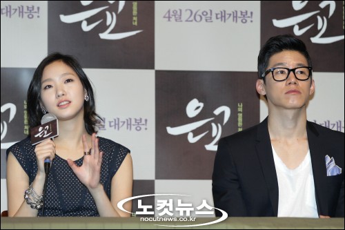 영화 '은교' 언론시사회가 18일 오후 서울 자양동 롯데시네마 건대점에서 열린 가운데 배우 김고은(왼쪽)이 취재진의 질문에 답하고 있다.