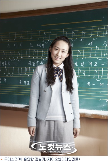 두레소리는 출석일수를 채우기 위해 합창을 배우게 된 국악 전공 문제아들의 좌충우돌 합창단 창단 실화를 감동적으로 그려낸 음악 영화. 김슬기는 극 중 주인공 슬기 역을 맡아 연기자 신고식을 치렀다.
