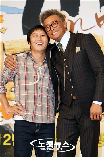 동갑내기 파이터 추성훈의 합류와 함께 시즌2로 돌아온 SBS '김병만의 정글의 법칙' 기자간담회가 27일 오후 서울 양천구 목동 SBS사옥에서 열렸다. 개그맨 김병만과 이종격투기 선수 추성훈이 포즈를 취하고 있다.
