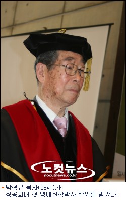기독교계 원로로 한국사회 민주화에 기여한 박형규 목사(89세)가 성공회대 첫 명예신학박사 학위를 받았다.
