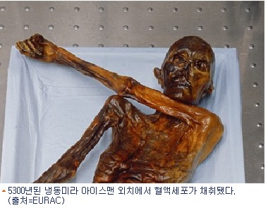 라이브사이언스는 ‘아이스맨 외치(iceman Ötzi)’라고 불리는 냉동미라에서 세계에서 제일 오래된 혈액세포가 채취됐다고 1일(현지시간) 보도했다.