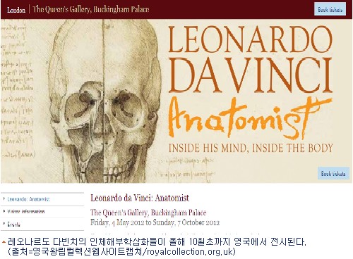 레오나르도의 해부삽화들은 영국왕립컬렉션에 소장돼 있고 올해 10월 초까지 퀸즈겔러리에 전시된다.