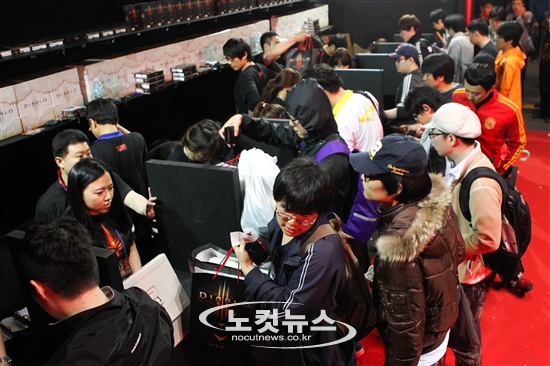 블리자드의 디아블로3 정식발매를 하루 앞둔 14일 오후 서울 왕십리역 광장에서 시민들이 디아블로3 한정판을 구매하고 있다.