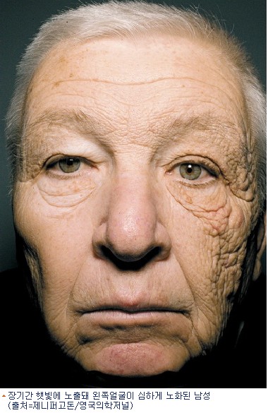 라이브사이언스는 자외선에 장기간 노출돼 한쪽얼굴만 심하게 노화된 남성의 사진이 공개됐다고 4일(현지시간) 보도했다.