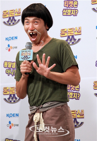 11일 오후 서울 상암동 CJ E&M 센터에서 열린 코믹 라이브쇼 '2012 옹달샘 쑈' 제작발표회에 참석한 유세윤이 취재진을 향해 포즈를 취하고 있다.
