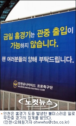 한국프로축구연맹은 관중 소요사태의 책임이 있는 인천에게 '제3지역'에서 홈경기를 치르는 징계를 내렸다. 하지만 인천은 수위가 더 높은 무관중 경기를 택했다. 제3지역에서 경기를 치르는 비용과 무관중 경기를 치르는 손실이 크게 다르지 않다는 것이 숨은 이유였다.
