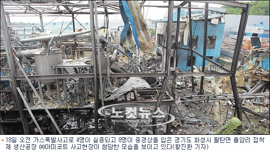 접착제 공장에서 가스가 폭발해 8명이 다치고 4명이 실종되는 사고가 발생했다.