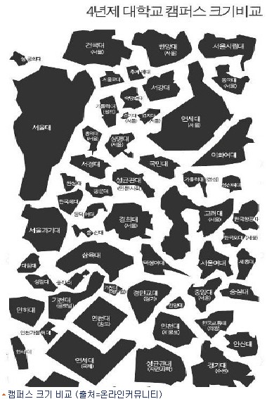 최근 한 온라인 커뮤니티에 ‘캠퍼스 크기 비교’라는 제목과 함께 사진 한 장이 게재됐다.