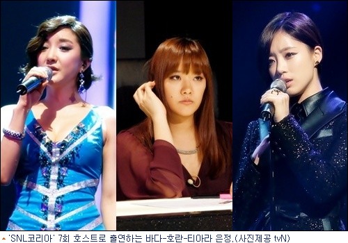 tvN 측은 “7일 생방송되는 ‘SNL코리아’ 7회 호스트로 바다, 호란, 티아라 은정 등 3명의 여성들이 함께 나서 ‘싱글 레이디 스페셜’을 펼친다”고 밝혔다.